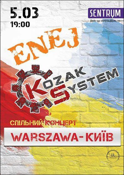 Вибухове польсько-українське рок-шоу гуртів Enej та Kozak System «Warszawa - Київ»! 5 березня 2016 року у клубі «Sentrum».