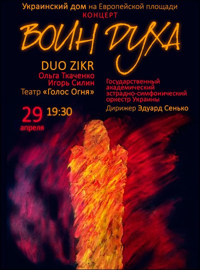 «Воин Духа» дуэта вокальных импровизаций Duo Zikr (Ольга Ткаченко, Игорь Силин), театра «Голос огня» и Государственного академического эстрадно-симфонического оркестра Украины. Дирижер Эдуард Сенько.