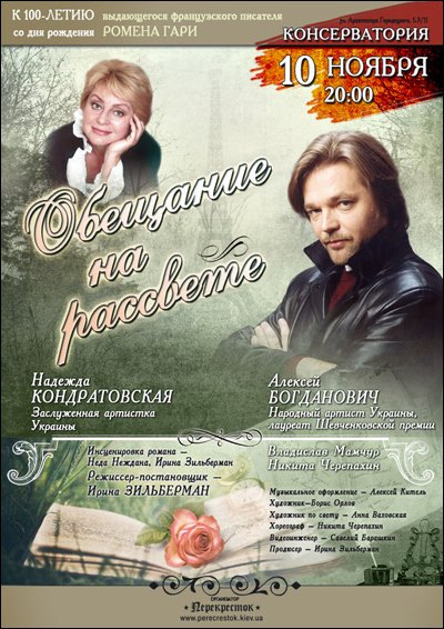 Ведущие актеры Национального театра имени Ивана Франко, Национального театра имени Леси Украинки, Нового драматического театра на Печерске в содружестве с продюсерской компанией «Домино-Арт» посвящают 100-летию со дня рождения Ромена Гари сценическую версию его выдающегося романа.