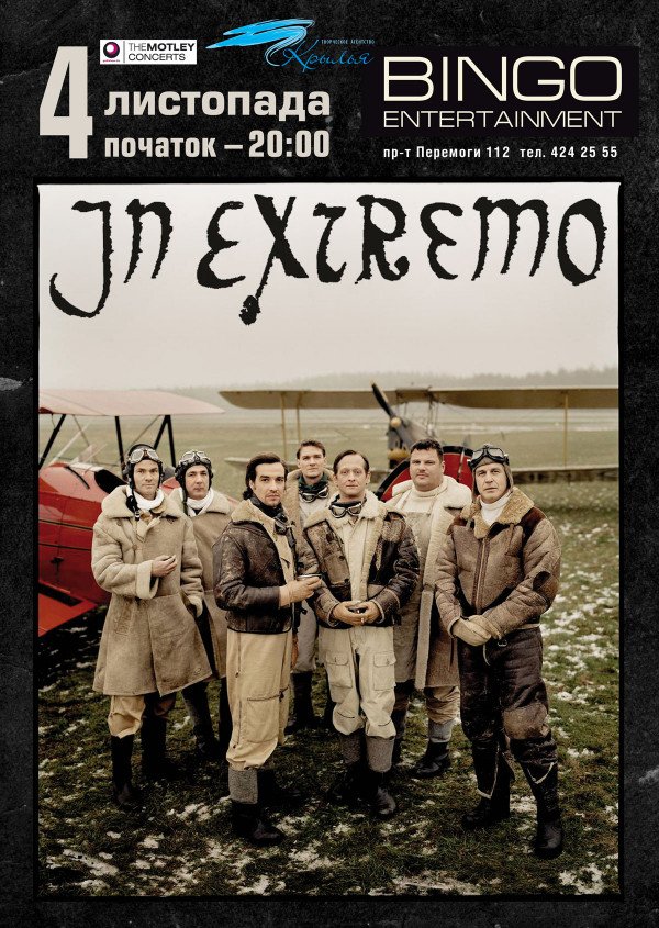 In Extremo состоится 4 ноября 2011, 20:00, пятница в Bingo. С помощью сервиса internet-bilet.ua, Вы сможете с легкостью забронировать, заказать и купить билеты на интересующий Вас концерт, спектакль, оперу, балет, мастер-классы, спортивные и детские мероприятия, оплатив их самым удобным для Вас способом: через интернет банковской картой VISA/MasterCard, наличными или курьером, если сделаете заказ билета c доставкой.