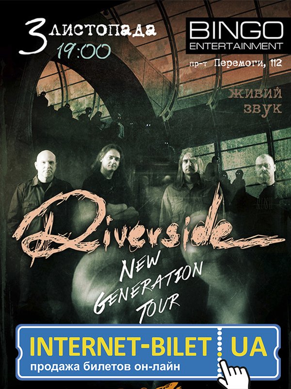 Riverside состоится 3 ноября 2013, 19:00, воскресенье в Bingo. С помощью сервиса internet-bilet.ua, Вы сможете с легкостью забронировать, заказать и купить билеты на интересующий Вас концерт, спектакль, оперу, балет, мастер-классы, спортивные и детские мероприятия, оплатив их самым удобным для Вас способом: через интернет банковской картой VISA/MasterCard, наличными или курьером, если сделаете заказ билета c доставкой.
