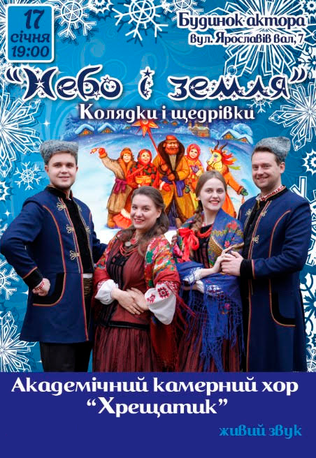 «Небо и земля» Колядки состоится 17 января 2019, 19:00, четверг в Дом Актера. С помощью сервиса internet-bilet.ua, Вы сможете с легкостью забронировать, заказать и купить билеты на интересующий Вас концерт, спектакль, оперу, балет, мастер-классы, спортивные и детские мероприятия, оплатив их самым удобным для Вас способом: через интернет банковской картой VISA/MasterCard, наличными или курьером, если сделаете заказ билета c доставкой.