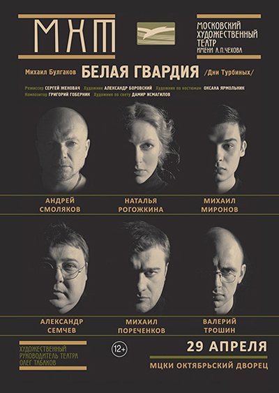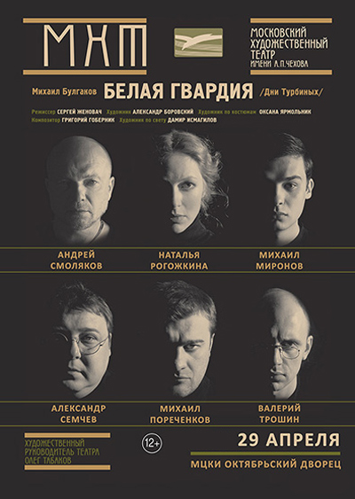 Белая Гвардия состоится 29 апреля 2014, 19:00, вторник в МЦКИ (Октябрьский Дворец). С помощью сервиса internet-bilet.ua, Вы сможете с легкостью забронировать, заказать и купить билеты на интересующий Вас концерт, спектакль, оперу, балет, мастер-классы, спортивные и детские мероприятия, оплатив их самым удобным для Вас способом: через интернет банковской картой VISA/MasterCard, наличными или курьером, если сделаете заказ билета c доставкой.