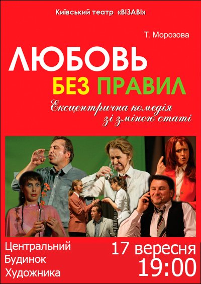 Киевский театр Визави приглашает на эксцентрическую комедию «Любовь без правил». 17 сентября 2014 года на сцене Центрального Дома Художника.