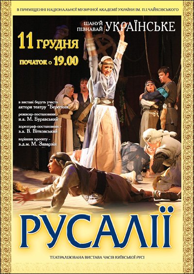 Театралізована вистава часів Київської Русі «Русалії». 11 грудня 2014 року на сцені Національної музичної академії України імені П. І. Чайковського.