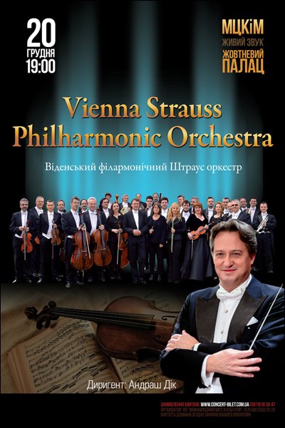 Впервые в своей истории Венский Филармонический Штраус-Оркестр коротким туром проедет по Украине и даст концерты в трех городах - Киеве, Днепропетровске и Одессе. 20 декабря 2015 года он выступит в Киеве на сцене МЦКиИ «Октябрьский Дворец».