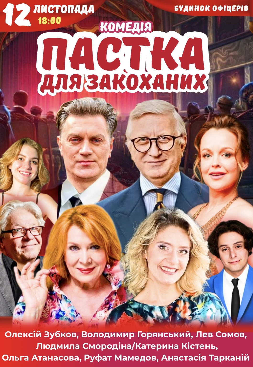 Спектакль "Ловушка для влюбленных". Премьера! состоится 12 ноября 2025, 18:00, среда в Дом офицеров. С помощью сервиса internet-bilet.ua, Вы сможете с легкостью забронировать, заказать и купить билеты на интересующий Вас концерт, спектакль, оперу, балет, мастер-классы, спортивные и детские мероприятия, оплатив их самым удобным для Вас способом: через интернет банковской картой VISA/MasterCard, наличными или курьером, если сделаете заказ билета c доставкой.