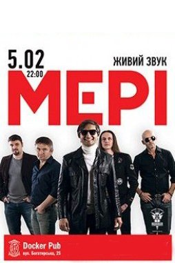 МЭРИ состоится 5 февраля 2016, 22:00, пятница в Docker Pub. С помощью сервиса internet-bilet.ua, Вы сможете с легкостью забронировать, заказать и купить билеты на интересующий Вас концерт, спектакль, оперу, балет, мастер-классы, спортивные и детские мероприятия, оплатив их самым удобным для Вас способом: через интернет банковской картой VISA/MasterCard, наличными или курьером, если сделаете заказ билета c доставкой.
