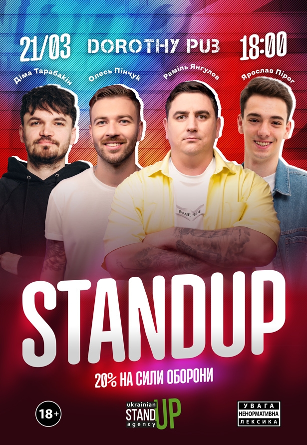 СТЕНДАП в Дороти Паб состоится 21 марта 2026, 18:00, суббота в Dorothy pub. С помощью сервиса internet-bilet.ua, Вы сможете с легкостью забронировать, заказать и купить билеты на интересующий Вас концерт, спектакль, оперу, балет, мастер-классы, спортивные и детские мероприятия, оплатив их самым удобным для Вас способом: через интернет банковской картой VISA/MasterCard, наличными или курьером, если сделаете заказ билета c доставкой.