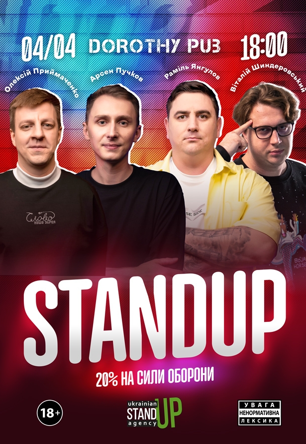 СТЕНДАП в Дороти Паб состоится 4 апреля 2026, 18:00, суббота в Dorothy pub. С помощью сервиса internet-bilet.ua, Вы сможете с легкостью забронировать, заказать и купить билеты на интересующий Вас концерт, спектакль, оперу, балет, мастер-классы, спортивные и детские мероприятия, оплатив их самым удобным для Вас способом: через интернет банковской картой VISA/MasterCard, наличными или курьером, если сделаете заказ билета c доставкой.