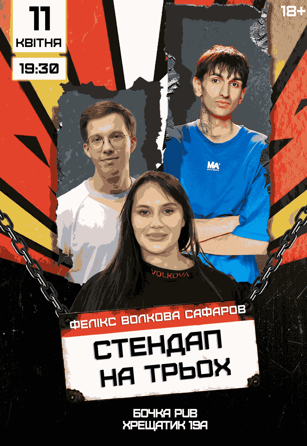 Стендап На Троих состоится 11 апреля 2026, 19:30, суббота в Бочка Pub. С помощью сервиса internet-bilet.ua, Вы сможете с легкостью забронировать, заказать и купить билеты на интересующий Вас концерт, спектакль, оперу, балет, мастер-классы, спортивные и детские мероприятия, оплатив их самым удобным для Вас способом: через интернет банковской картой VISA/MasterCard, наличными или курьером, если сделаете заказ билета c доставкой.