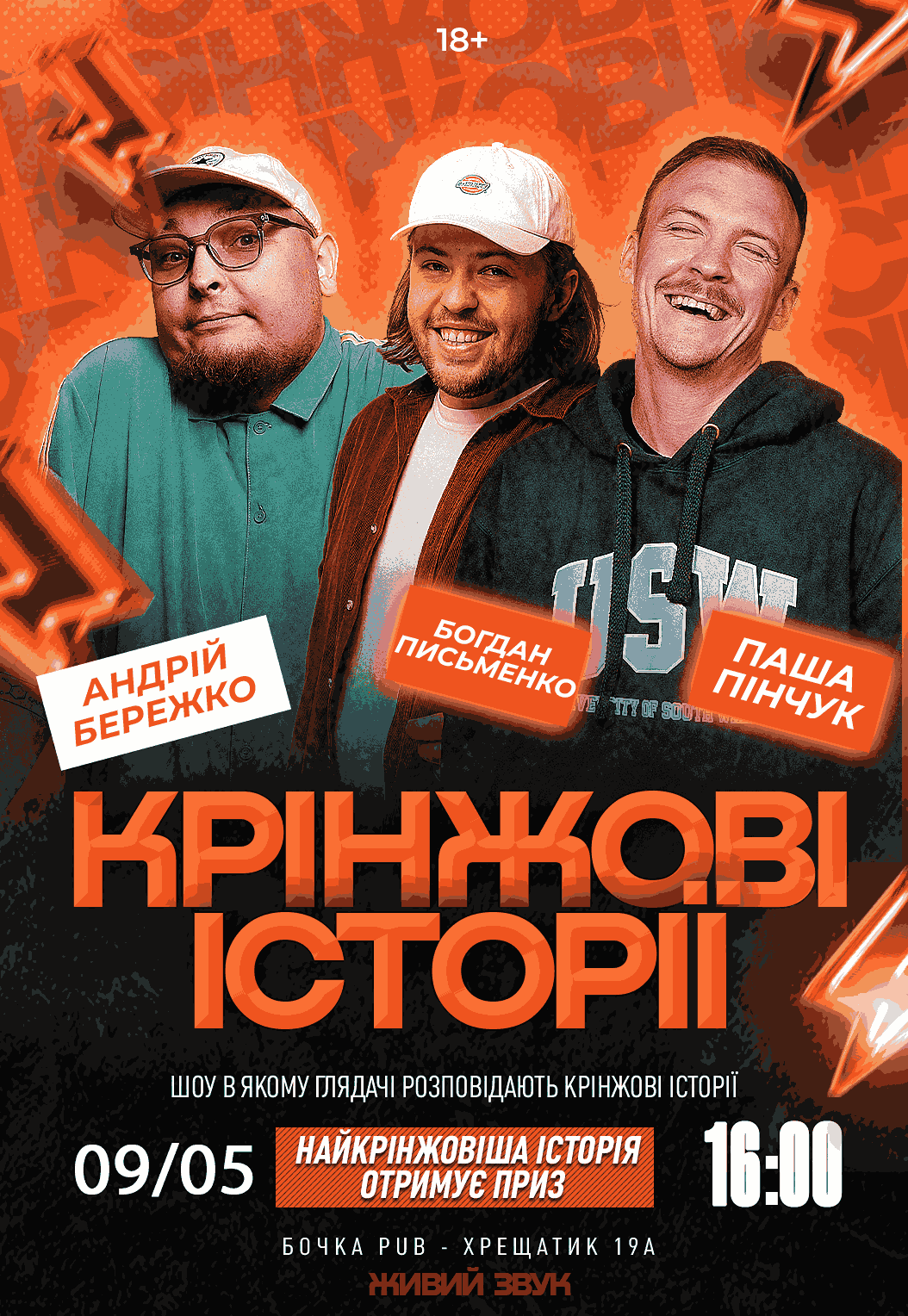 Шоу "Кринжовые истории" состоится 9 мая 2026, 16:00, суббота в Бочка Pub. С помощью сервиса internet-bilet.ua, Вы сможете с легкостью забронировать, заказать и купить билеты на интересующий Вас концерт, спектакль, оперу, балет, мастер-классы, спортивные и детские мероприятия, оплатив их самым удобным для Вас способом: через интернет банковской картой VISA/MasterCard, наличными или курьером, если сделаете заказ билета c доставкой.