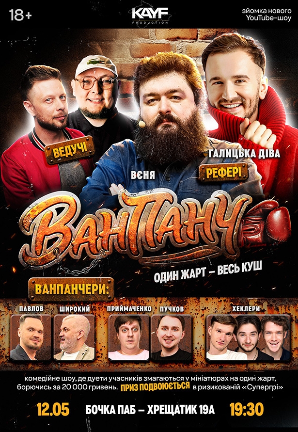 Юмористическое шоу "Ван Панч" состоится 12 мая 2026, 19:30, вторник в Бочка Pub. С помощью сервиса internet-bilet.ua, Вы сможете с легкостью забронировать, заказать и купить билеты на интересующий Вас концерт, спектакль, оперу, балет, мастер-классы, спортивные и детские мероприятия, оплатив их самым удобным для Вас способом: через интернет банковской картой VISA/MasterCard, наличными или курьером, если сделаете заказ билета c доставкой.