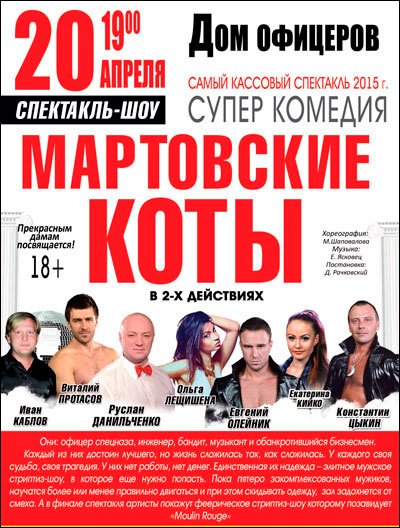 Спектакль-шоу «Мартовские коты» 20 апреля 2016 года на сцене Дома офицеров.