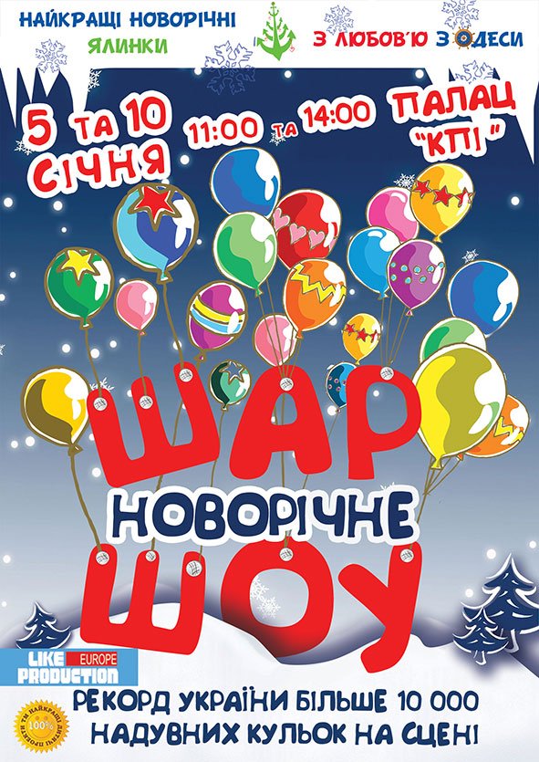 Новогоднее Шар-ШОУ! (14:00) состоится 10 января 2016, 14:00, воскресенье в ЦКИ КПИ им. Игоря Сикорского. С помощью сервиса internet-bilet.ua, Вы сможете с легкостью забронировать, заказать и купить билеты на интересующий Вас концерт, спектакль, оперу, балет, мастер-классы, спортивные и детские мероприятия, оплатив их самым удобным для Вас способом: через интернет банковской картой VISA/MasterCard, наличными или курьером, если сделаете заказ билета c доставкой.