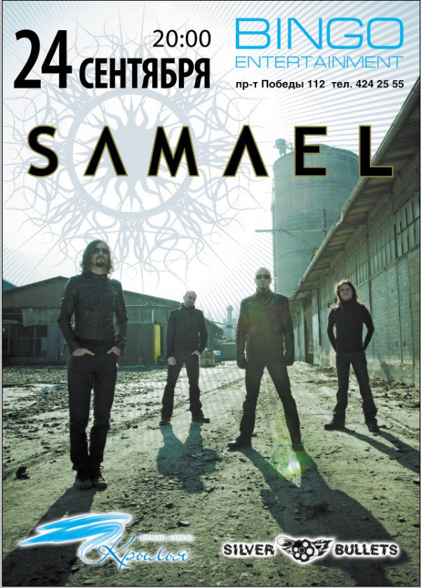 Samael відбудеться 24 вересня 2012, 20:00, понеділок в Bingo. За допомогою сервісу internet-bilet.ua, Ви зможете з легкістю забронювати, замовити та купити квитки на концерт, спектакль, оперу, балет, майстер-класи, спортивні та дитячі заходи, що Вас цікавлять, оплативши їх найбільш зручним для Вас способом: через інтернет банківською карткою VISA/MasterCard, готівкою або кур'єром, якщо зробите замовлення квитка з доставкою.