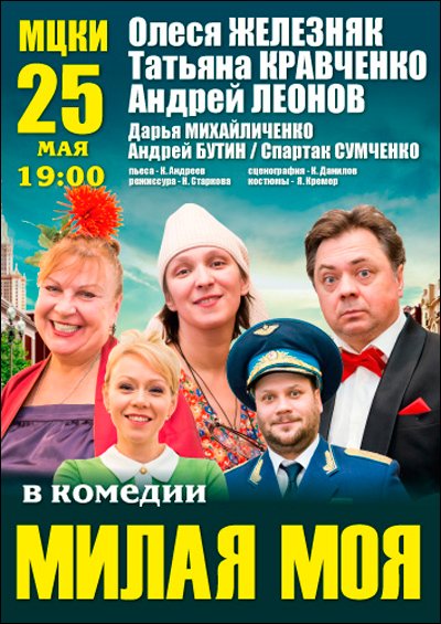 Милая моя відбудеться 25 травня 2016, 19:00, середа в МЦКМ (Жовтневий Палац) . За допомогою сервісу internet-bilet.ua, Ви зможете з легкістю забронювати, замовити та купити квитки на концерт, спектакль, оперу, балет, майстер-класи, спортивні та дитячі заходи, що Вас цікавлять, оплативши їх найбільш зручним для Вас способом: через інтернет банківською карткою VISA/MasterCard, готівкою або кур'єром, якщо зробите замовлення квитка з доставкою.