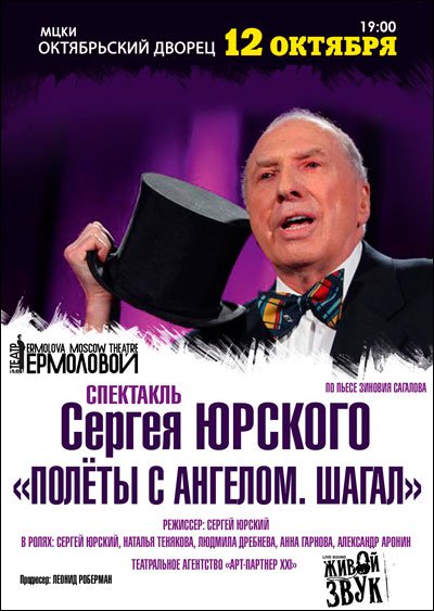 Полеты с ангелом. Шагал. відбудеться 12 жовтня 2016, 19:00, середа в МЦКМ (Жовтневий Палац) . За допомогою сервісу internet-bilet.ua, Ви зможете з легкістю забронювати, замовити та купити квитки на концерт, спектакль, оперу, балет, майстер-класи, спортивні та дитячі заходи, що Вас цікавлять, оплативши їх найбільш зручним для Вас способом: через інтернет банківською карткою VISA/MasterCard, готівкою або кур'єром, якщо зробите замовлення квитка з доставкою.