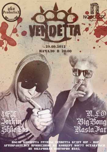 Группа VENDETTA відбудеться 29 вересня 2012, 19:00, субота в Клуб Noblesse. За допомогою сервісу internet-bilet.ua, Ви зможете з легкістю забронювати, замовити та купити квитки на концерт, спектакль, оперу, балет, майстер-класи, спортивні та дитячі заходи, що Вас цікавлять, оплативши їх найбільш зручним для Вас способом: через інтернет банківською карткою VISA/MasterCard, готівкою або кур'єром, якщо зробите замовлення квитка з доставкою.