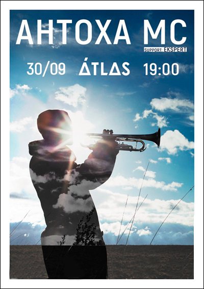 30 сентября 2016 года клуб Atlas будет волновать, вдохновлять и заставлять вибрировать непосредственный и уникальный Антоха MC вместе с киевским диск-жокеем Dj Ekspert. Хип-хоп идеолог и проповедник, Антоха MC накладывает проникновенные тексты на собственные биты, обрамляя все это звуками трубы. «Она - мой золотой ключик, моя палочка-выручалочка, моя ксива и дубинка», - с трепетом говорит о своем инструменте музыкант.