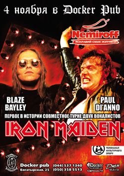 Вокалисты Iron Maden Блейза Бейли и Пола ДиАнно відбудеться 4 листопада 2012, 20:00, неділя в Docker Pub. За допомогою сервісу internet-bilet.ua, Ви зможете з легкістю забронювати, замовити та купити квитки на концерт, спектакль, оперу, балет, майстер-класи, спортивні та дитячі заходи, що Вас цікавлять, оплативши їх найбільш зручним для Вас способом: через інтернет банківською карткою VISA/MasterCard, готівкою або кур'єром, якщо зробите замовлення квитка з доставкою.