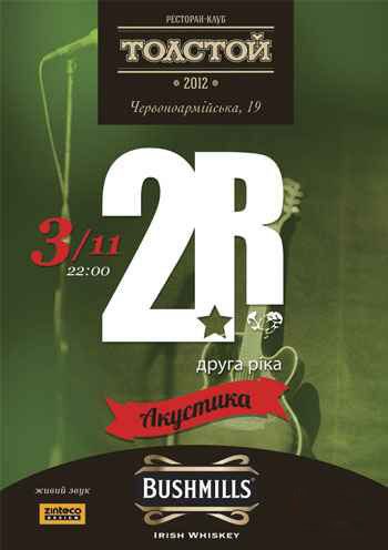 Dруга Рiка. Акустика відбудеться 3 листопада 2012, 22:00, субота в Клуб-ресторан "Толстой". За допомогою сервісу internet-bilet.ua, Ви зможете з легкістю забронювати, замовити та купити квитки на концерт, спектакль, оперу, балет, майстер-класи, спортивні та дитячі заходи, що Вас цікавлять, оплативши їх найбільш зручним для Вас способом: через інтернет банківською карткою VISA/MasterCard, готівкою або кур'єром, якщо зробите замовлення квитка з доставкою.