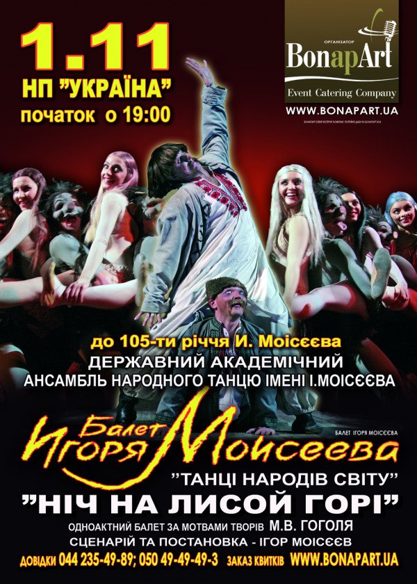 1 ноября уникальный и знаменитый на весь мир Балет лауреата американской премии "Оскар" Игоря Моисеева с одноактным балетом «Ночь на Лысой горе»