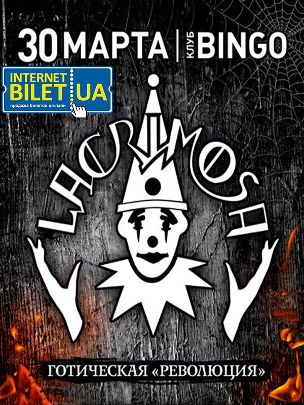 Lacrimosa відбудеться 30 березня 2013, 20:00, субота в Bingo. За допомогою сервісу internet-bilet.ua, Ви зможете з легкістю забронювати, замовити та купити квитки на концерт, спектакль, оперу, балет, майстер-класи, спортивні та дитячі заходи, що Вас цікавлять, оплативши їх найбільш зручним для Вас способом: через інтернет банківською карткою VISA/MasterCard, готівкою або кур'єром, якщо зробите замовлення квитка з доставкою.