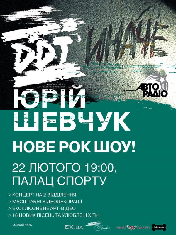 ДДТ - «Иначе» відбудеться 22 лютого 2012, 19:00, середа в Палац спорту. За допомогою сервісу internet-bilet.ua, Ви зможете з легкістю забронювати, замовити та купити квитки на концерт, спектакль, оперу, балет, майстер-класи, спортивні та дитячі заходи, що Вас цікавлять, оплативши їх найбільш зручним для Вас способом: через інтернет банківською карткою VISA/MasterCard, готівкою або кур'єром, якщо зробите замовлення квитка з доставкою.