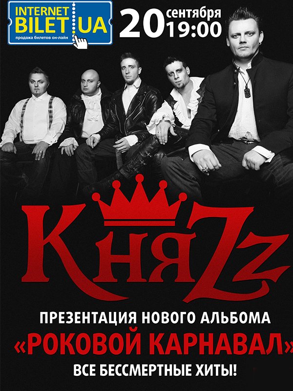 КняZz відбудеться 20 вересня 2013, 19:00, п’ятниця в Bingo. За допомогою сервісу internet-bilet.ua, Ви зможете з легкістю забронювати, замовити та купити квитки на концерт, спектакль, оперу, балет, майстер-класи, спортивні та дитячі заходи, що Вас цікавлять, оплативши їх найбільш зручним для Вас способом: через інтернет банківською карткою VISA/MasterCard, готівкою або кур'єром, якщо зробите замовлення квитка з доставкою.