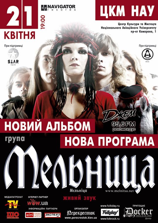 Мельница відбудеться 21 квітня 2012, 19:00, субота в ЦКМ НАУ. За допомогою сервісу internet-bilet.ua, Ви зможете з легкістю забронювати, замовити та купити квитки на концерт, спектакль, оперу, балет, майстер-класи, спортивні та дитячі заходи, що Вас цікавлять, оплативши їх найбільш зручним для Вас способом: через інтернет банківською карткою VISA/MasterCard, готівкою або кур'єром, якщо зробите замовлення квитка з доставкою.