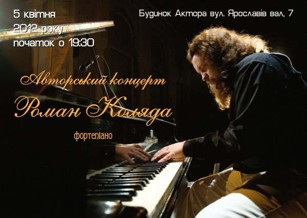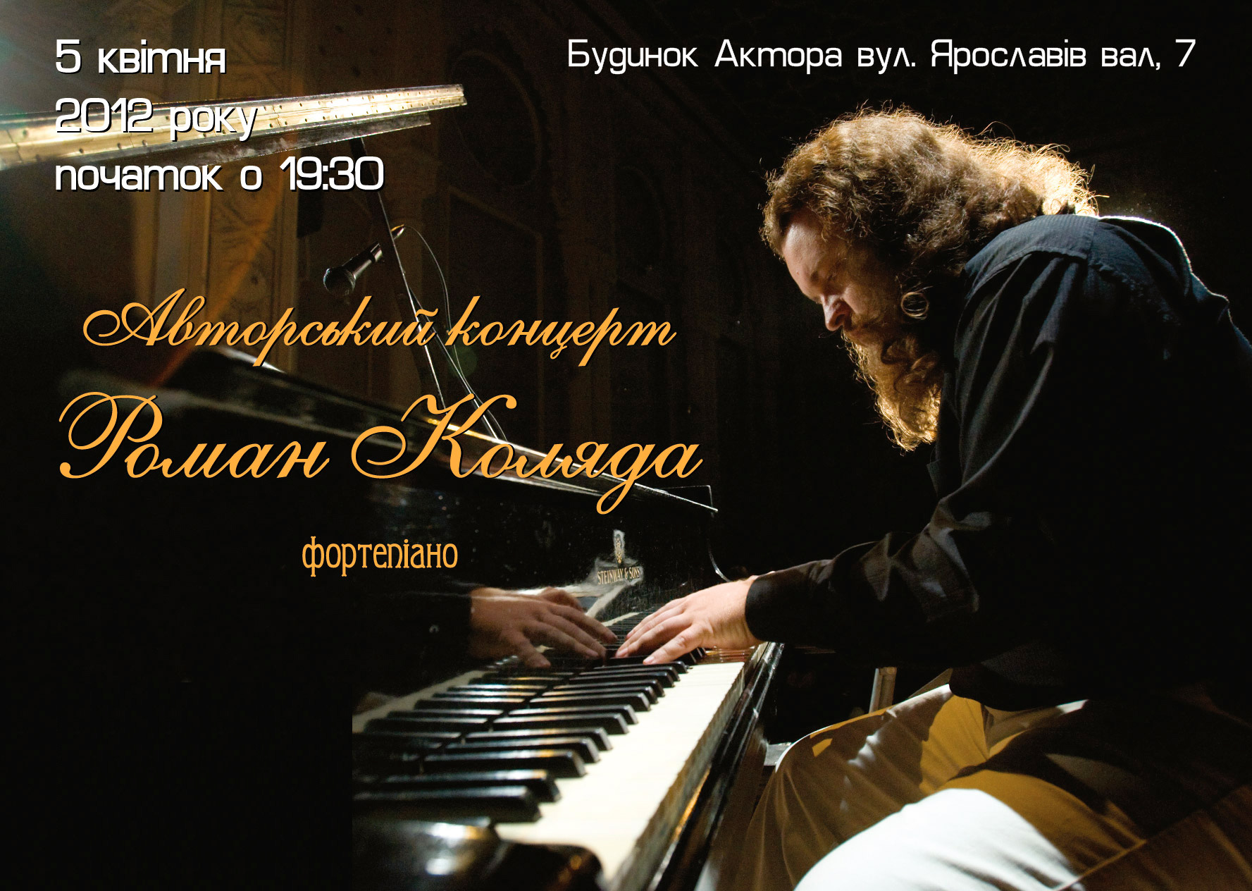 Авторский концерт Романа Коляды відбудеться 5 квітня 2012, 19:30, четвер в Будинок Актора. За допомогою сервісу internet-bilet.ua, Ви зможете з легкістю забронювати, замовити та купити квитки на концерт, спектакль, оперу, балет, майстер-класи, спортивні та дитячі заходи, що Вас цікавлять, оплативши їх найбільш зручним для Вас способом: через інтернет банківською карткою VISA/MasterCard, готівкою або кур'єром, якщо зробите замовлення квитка з доставкою.