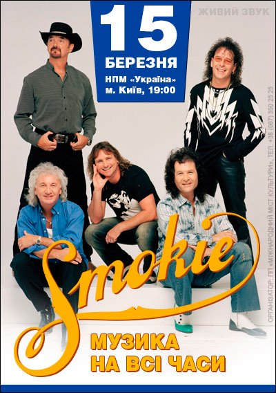 15 марта 2015 года в НПМ «Україна» новая встреча с легендарной группой «Smokie» - те самые британцы, увенчанные многолетней славой и испытанные прошедшими десятилетиями.