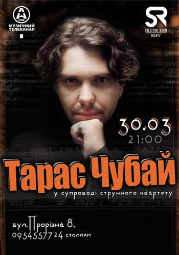 Проект Меломан презентує: 30 березня о 21:00 у столичному клубі Sullivan Room Тарас Чубай співає українську поезію у супроводі струнного квартету