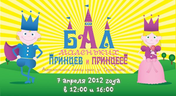 Если Вашим детям от 3 до 8 лет, и они настоящие принцы и принцессы, любят наряжаться, танцевать, веселиться, выигрывать призы, общаться, учиться новому и интересному, тогда мы приглашаем вас 7 апреля 2012 года в 12:00 и 16:00 в Киевском Академическом Кукольном Театра (ул. Грушевского, 1-а) на ежегодное благотворительное мероприятие "Бал маленьких принцев и принцесс".