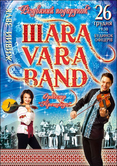 Шaravaraband відбудеться 26 грудня 2014, 19:30, п’ятниця в Будинок офіцерів. За допомогою сервісу internet-bilet.ua, Ви зможете з легкістю забронювати, замовити та купити квитки на концерт, спектакль, оперу, балет, майстер-класи, спортивні та дитячі заходи, що Вас цікавлять, оплативши їх найбільш зручним для Вас способом: через інтернет банківською карткою VISA/MasterCard, готівкою або кур'єром, якщо зробите замовлення квитка з доставкою.