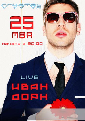 Иван Дорн відбудеться 25 травня 2012, 20:00, п’ятниця в Crystal Hall. За допомогою сервісу internet-bilet.ua, Ви зможете з легкістю забронювати, замовити та купити квитки на концерт, спектакль, оперу, балет, майстер-класи, спортивні та дитячі заходи, що Вас цікавлять, оплативши їх найбільш зручним для Вас способом: через інтернет банківською карткою VISA/MasterCard, готівкою або кур'єром, якщо зробите замовлення квитка з доставкою.