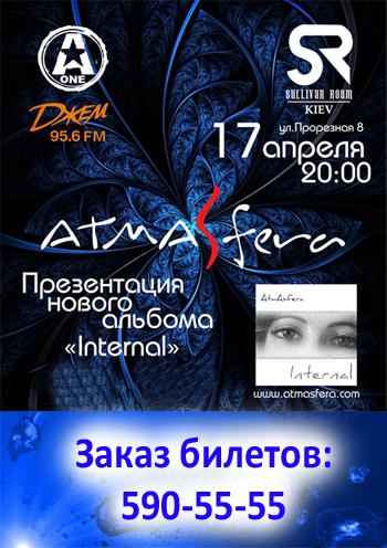 AtmAsfera відбудеться 17 квітня 2012, 20:00, вівторок в Sullivan Room. За допомогою сервісу internet-bilet.ua, Ви зможете з легкістю забронювати, замовити та купити квитки на концерт, спектакль, оперу, балет, майстер-класи, спортивні та дитячі заходи, що Вас цікавлять, оплативши їх найбільш зручним для Вас способом: через інтернет банківською карткою VISA/MasterCard, готівкою або кур'єром, якщо зробите замовлення квитка з доставкою.