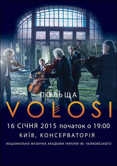 Volosi відбудеться 16 січня 2015, 19:00, п’ятниця в Національна музична академія України. За допомогою сервісу internet-bilet.ua, Ви зможете з легкістю забронювати, замовити та купити квитки на концерт, спектакль, оперу, балет, майстер-класи, спортивні та дитячі заходи, що Вас цікавлять, оплативши їх найбільш зручним для Вас способом: через інтернет банківською карткою VISA/MasterCard, готівкою або кур'єром, якщо зробите замовлення квитка з доставкою.
