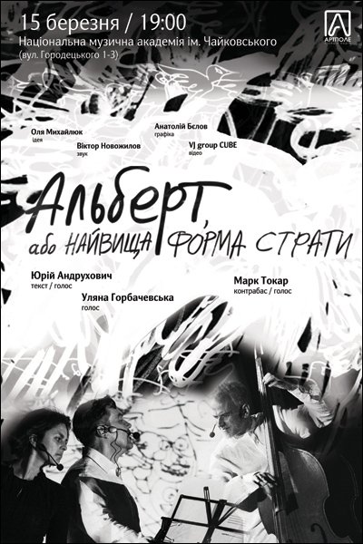 Вистава «Альберт, або найвища форма страти». 15 березня 2015 року на сцені Національної музичної академії України імені П. І. Чайковського.