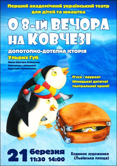 О 8-ій вечора на Ковчезі відбудеться 21 березня 2015, 11:30, субота в Театр "Особистості" (Центральний будинок художника). За допомогою сервісу internet-bilet.ua, Ви зможете з легкістю забронювати, замовити та купити квитки на концерт, спектакль, оперу, балет, майстер-класи, спортивні та дитячі заходи, що Вас цікавлять, оплативши їх найбільш зручним для Вас способом: через інтернет банківською карткою VISA/MasterCard, готівкою або кур'єром, якщо зробите замовлення квитка з доставкою.