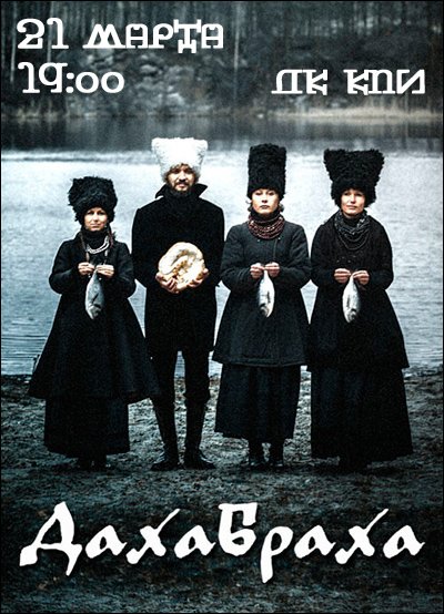 ДахаБраха відбудеться 21 березня 2015, 19:00, субота в ЦКМ КПІ ім. Ігоря Сікорського. За допомогою сервісу internet-bilet.ua, Ви зможете з легкістю забронювати, замовити та купити квитки на концерт, спектакль, оперу, балет, майстер-класи, спортивні та дитячі заходи, що Вас цікавлять, оплативши їх найбільш зручним для Вас способом: через інтернет банківською карткою VISA/MasterCard, готівкою або кур'єром, якщо зробите замовлення квитка з доставкою.