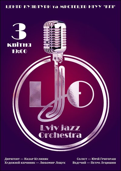 Lviv Jazz Orchestra відбудеться 14 травня 2015, 19:00, четвер в ЦКМ КПІ ім. Ігоря Сікорського. За допомогою сервісу internet-bilet.ua, Ви зможете з легкістю забронювати, замовити та купити квитки на концерт, спектакль, оперу, балет, майстер-класи, спортивні та дитячі заходи, що Вас цікавлять, оплативши їх найбільш зручним для Вас способом: через інтернет банківською карткою VISA/MasterCard, готівкою або кур'єром, якщо зробите замовлення квитка з доставкою.