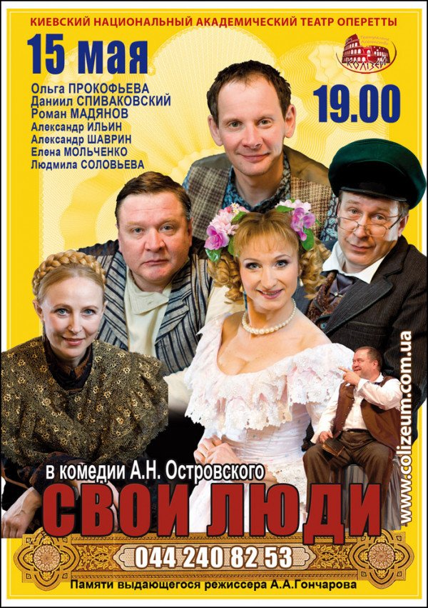 15 мая, 19-00 в помещении Киевского академического театра оперетты комедия «Свои люди - сочтёмся»