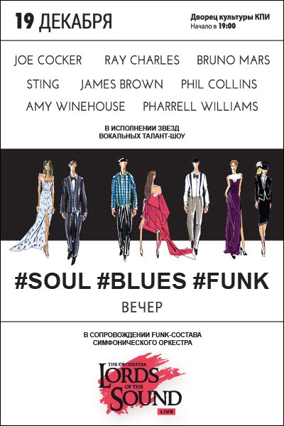 #soul #blues #funk вечер відбудеться 19 грудня 2015, 19:00, субота в ЦКМ КПІ ім. Ігоря Сікорського. За допомогою сервісу internet-bilet.ua, Ви зможете з легкістю забронювати, замовити та купити квитки на концерт, спектакль, оперу, балет, майстер-класи, спортивні та дитячі заходи, що Вас цікавлять, оплативши їх найбільш зручним для Вас способом: через інтернет банківською карткою VISA/MasterCard, готівкою або кур'єром, якщо зробите замовлення квитка з доставкою.
