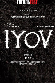Опера "IYOV" відбудеться 1 березня 2016, 19:30, вівторок в ЦКМ КПІ ім. Ігоря Сікорського. За допомогою сервісу internet-bilet.ua, Ви зможете з легкістю забронювати, замовити та купити квитки на концерт, спектакль, оперу, балет, майстер-класи, спортивні та дитячі заходи, що Вас цікавлять, оплативши їх найбільш зручним для Вас способом: через інтернет банківською карткою VISA/MasterCard, готівкою або кур'єром, якщо зробите замовлення квитка з доставкою.
