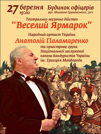 Веселий ярмарок відбудеться 27 березня 2016, 19:00, неділя в Будинок офіцерів. За допомогою сервісу internet-bilet.ua, Ви зможете з легкістю забронювати, замовити та купити квитки на концерт, спектакль, оперу, балет, майстер-класи, спортивні та дитячі заходи, що Вас цікавлять, оплативши їх найбільш зручним для Вас способом: через інтернет банківською карткою VISA/MasterCard, готівкою або кур'єром, якщо зробите замовлення квитка з доставкою.