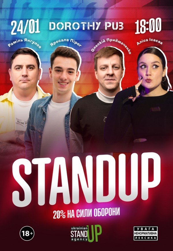 СТЕНДАП ПЕРЕВІРКА відбудеться 24 січня 2026, 18:00, субота в Dorothy pub. За допомогою сервісу internet-bilet.ua, Ви зможете з легкістю забронювати, замовити та купити квитки на концерт, спектакль, оперу, балет, майстер-класи, спортивні та дитячі заходи, що Вас цікавлять, оплативши їх найбільш зручним для Вас способом: через інтернет банківською карткою VISA/MasterCard, готівкою або кур'єром, якщо зробите замовлення квитка з доставкою.