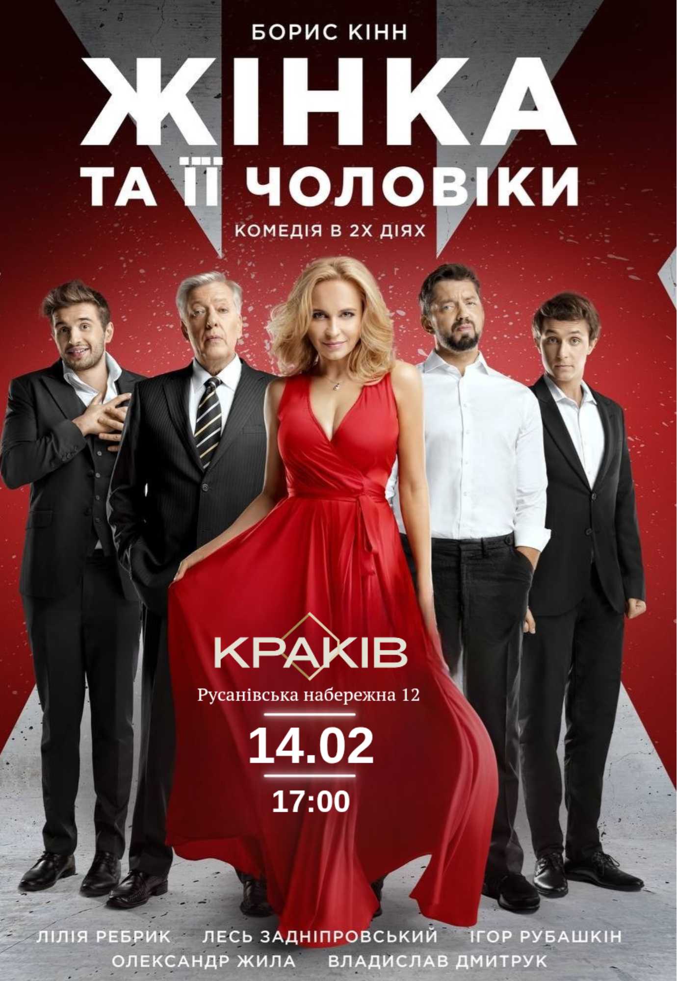 Вистава "Жінка та її чоловіки" відбудеться 14 лютого 2026, 17:00, субота в Київський культурний центр "Краків". За допомогою сервісу internet-bilet.ua, Ви зможете з легкістю забронювати, замовити та купити квитки на концерт, спектакль, оперу, балет, майстер-класи, спортивні та дитячі заходи, що Вас цікавлять, оплативши їх найбільш зручним для Вас способом: через інтернет банківською карткою VISA/MasterCard, готівкою або кур'єром, якщо зробите замовлення квитка з доставкою.