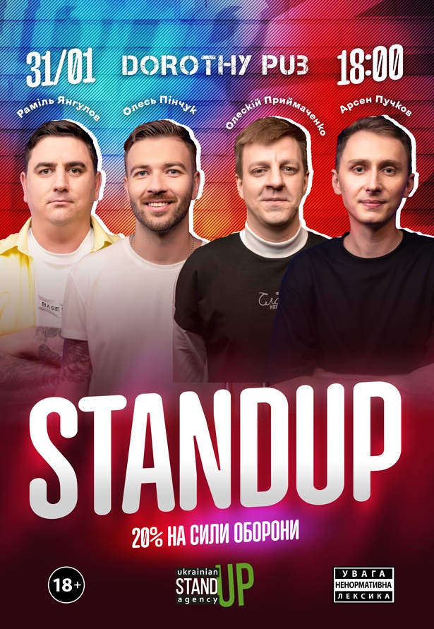 СТЕНДАП в Дороті Паб відбудеться 31 січня 2026, 18:00, субота в Dorothy pub. За допомогою сервісу internet-bilet.ua, Ви зможете з легкістю забронювати, замовити та купити квитки на концерт, спектакль, оперу, балет, майстер-класи, спортивні та дитячі заходи, що Вас цікавлять, оплативши їх найбільш зручним для Вас способом: через інтернет банківською карткою VISA/MasterCard, готівкою або кур'єром, якщо зробите замовлення квитка з доставкою.